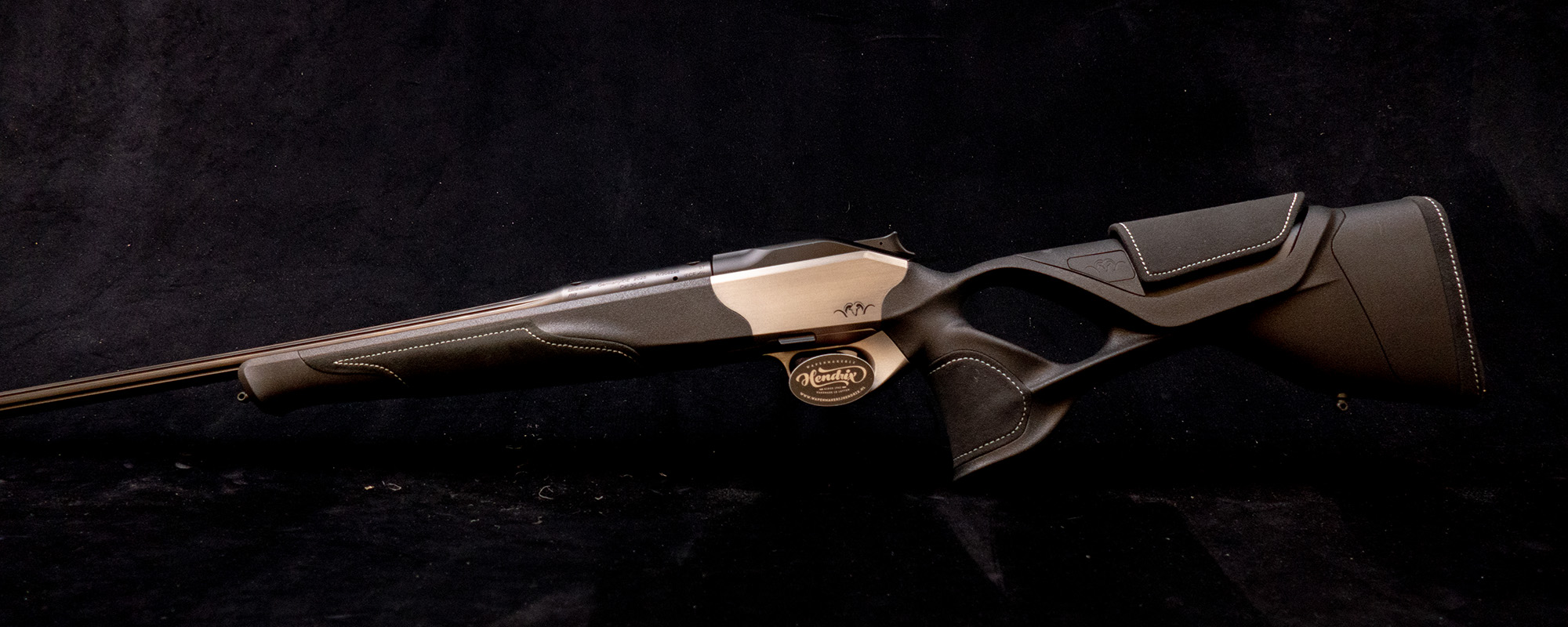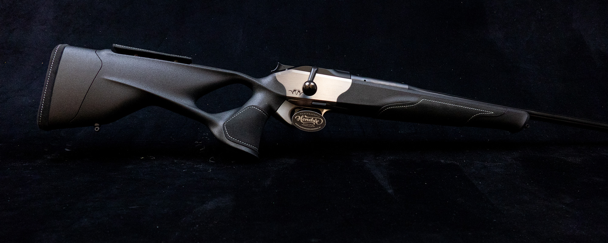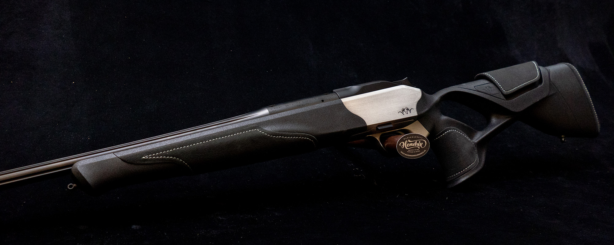 - Ergonomisch perfecte Ultimate duimgatkolf in zwart met verstelbaar wangstuk in leer.